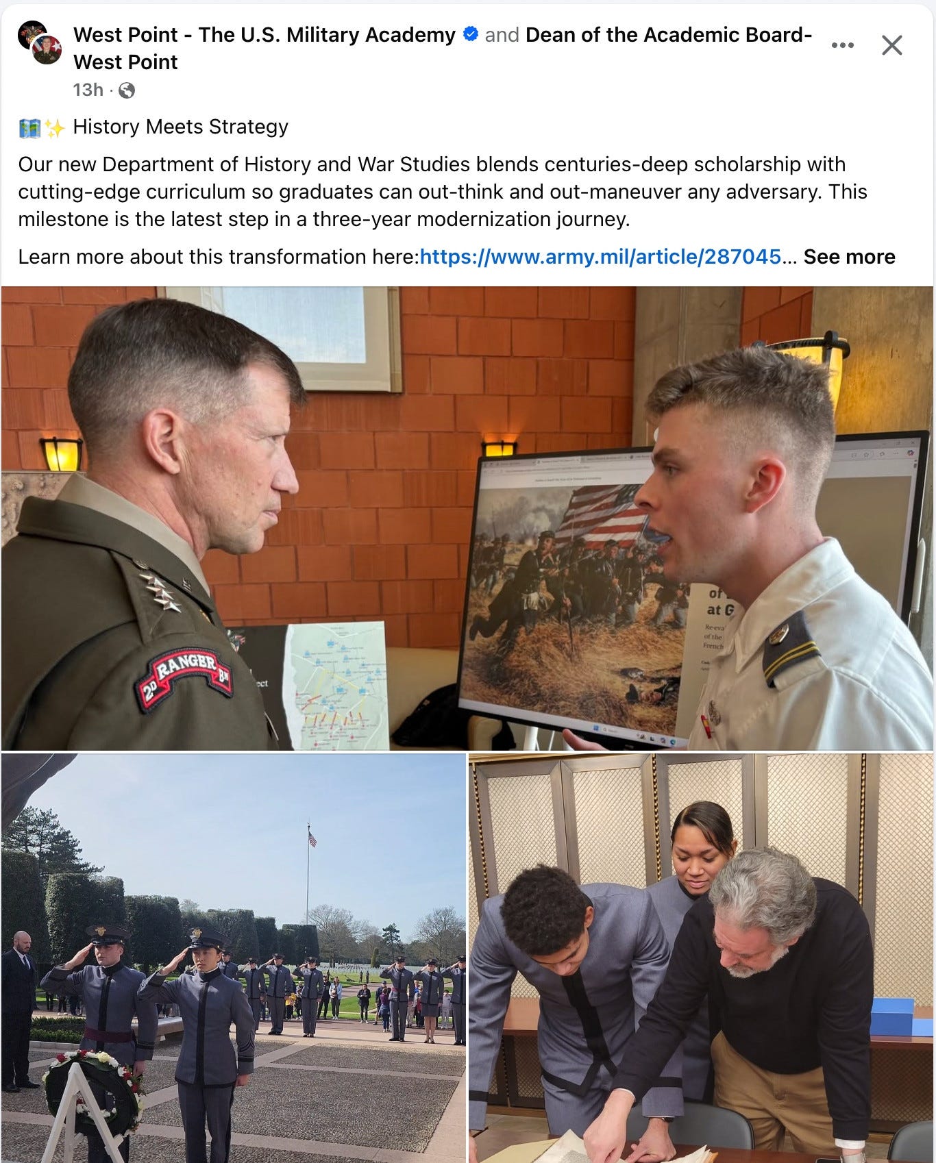 Major Renee Sanjuan, “West Point Expands Academic Modernization with Development of Department of History and War Studies,” Army West Point, July 14, 2025.